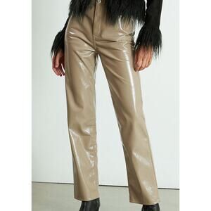 PacSun Tan Lacquered 90's Boyfriend Pants Faux Leather Beige Sz 26 High Rise T24