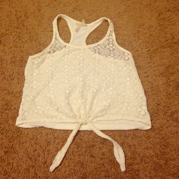 PacSun razorback tank-top with see-through flower lace front and tie on the bottom.