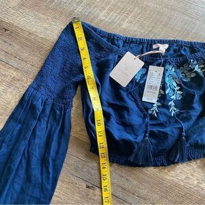 PacSun Top Peasant Festival Embroidered Tassel Cropped Boho NEW Medium