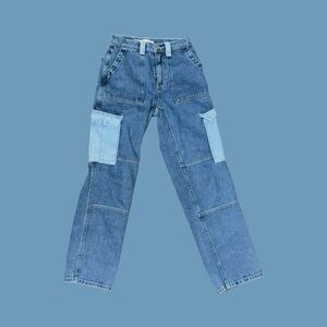 PacSun Two Toned Hi Rise Denim Cargo Jeans Size 3 23x26” #44