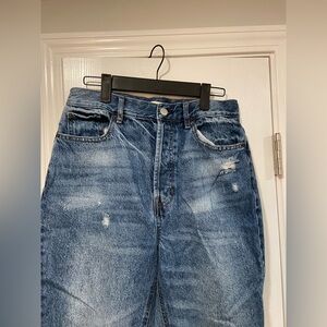 PacSun Ultra High Rise Slim Distressed Medium Wash Denim Button Jeans Size 28