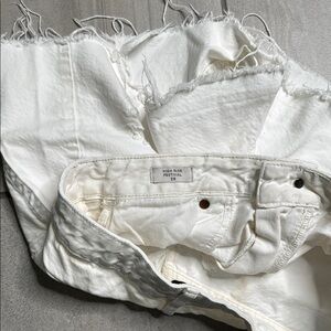 These high-waisted white shorts from PacSun feature a trendy distressed look with a raw, frayed hem. Perfect for casual outings, they offer a stylish and comfortable fit.