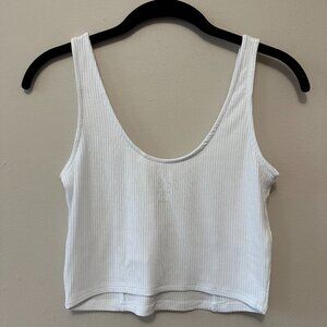PacSun White Ribbed Scoop Neck Crop Tank Top - Size Small