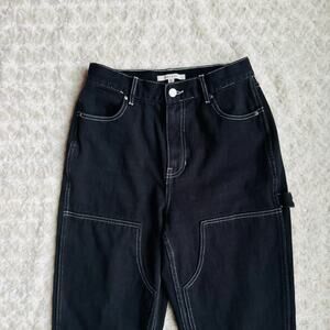 PacSun Women Black Denim Cotton Hi Rise Carpenter Double Knee Workwear Jeans 27