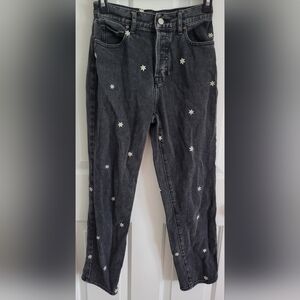 PacSun Women's Black High Rise Straight Leg Daisy Floral Embroidered Jeans