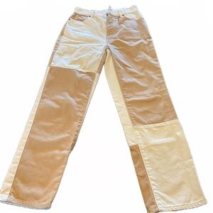 PacSun Women's Color Block Straight Leg Jeans High Rise - Beige and Tan 24 Waist