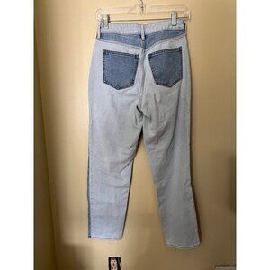 These stylish PacSun mom jeans feature a trendy two-tone design with a comfortable high-rise fit. Made from a durable cotton blend, these jeans offer both comfort and style for everyday wear.