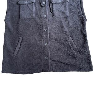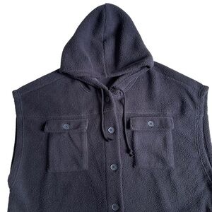 PacSun Women’s Hooded Polar Fleece Vest Size M/L Black Oversized Long Pockets