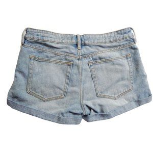 PacSun Womens MId Rise Girlfriend Shorts Button Fly Embroidered Shorts Denim Blu