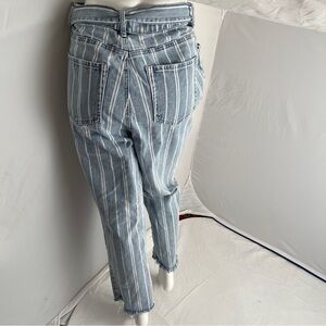 PacSun blue and white pinstripe high rise straight cropped jeans. Very retro 90s look. Removable waist tie. Frayed hem. Measurements in photos. Excellent condition. Smoke free home.