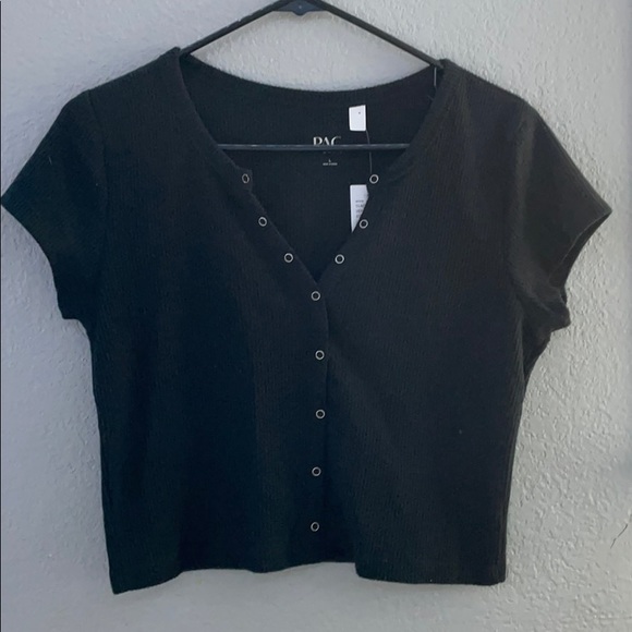 Cropped black ribbed PAC button top