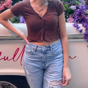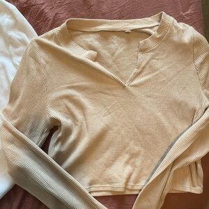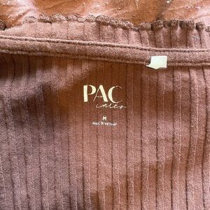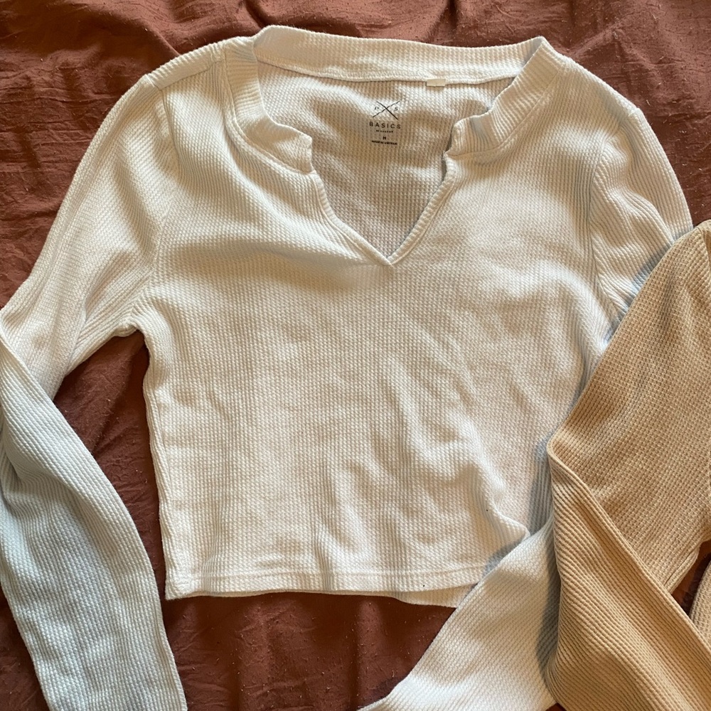 PacSun top bundle! The white & light brown are the same top, both size medium! Brown top is also a medium and has photos of it on in the last slides! I’ll throw in the black top as a freebie if you want (size M) because she’s been washed and dried a lot! (Will lent roll before shipping lol)
