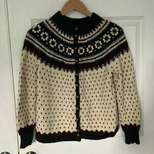 Pace Mace Wool Cream Sweater Size Medium gold buttons