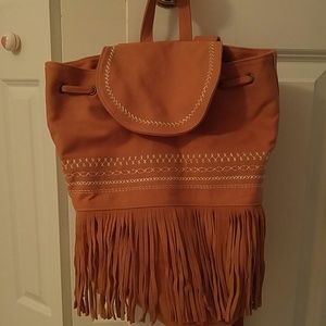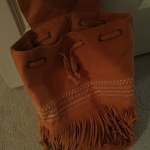 Burnt orange, lightly used, good condition back pack perfect for holding your items and going to the beach or school! Boho style