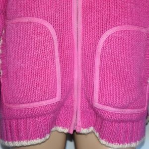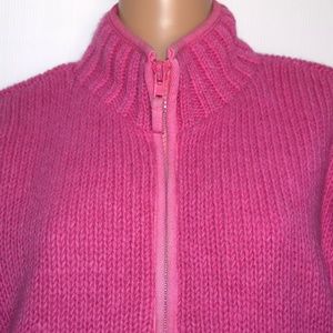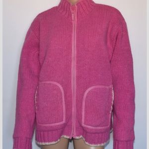 Pachamama Pink 100% Wool Full Zip Mock Neck Front Pockets Lined Cardigan Sz S/M