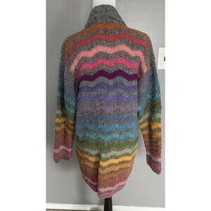 Pachamama Wool Hand Knit Multicoloured Cardigan Sz L Button Down Long Sweater