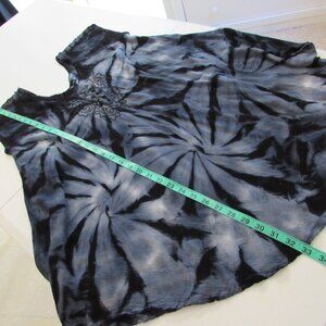 Pacific Batik Collection Tunic Top Free Size Blue Black Tie Dye Embroidered