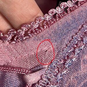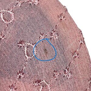 Condition: Good overall condition. Mild cosmetic flaws including small weave imperfection near neckline and a few small spots.