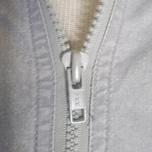 In excellent condition for it's age! Sleeve has light material line from where it was folded and collar has scuff/marks. There is also a small material light wear that is pointed to in the photos, which I also suspect is from being folded and just sitting in folding position. No holes, snags or stains found. Please review all photos.