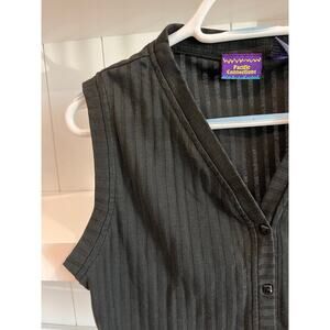 Pacific Connections Black Sleeveless Button Front Vest Sz Large Cotton Blend