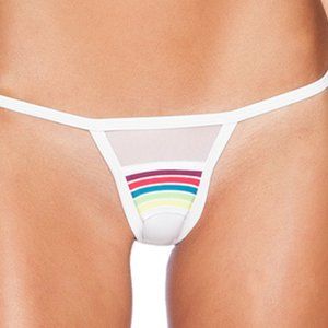 These minimal coverage bikini bottoms are double lined with luxe micro-fiber and have the perfect amount of mesh coverage above the rainbow.