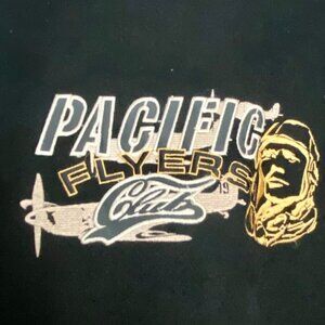 Pacific Flyers Club Jacket Faux Suede Insulated Brown/Dark Brown. Pacific Flyer Patch in front and back, button snaps and full zipper. 2 pockets, 1 interior pocket. Imitation Suede, 100% Nylon Lining, 100% Polyester Filling.