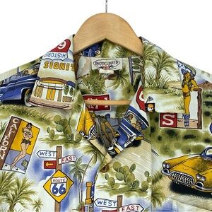Pacific Legend Hawaiian Style Travel Route 66 Men's Graphic Button Up Shirt