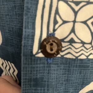 Pacific Legend Mens Large Hawaiian Shirt Blue Short Sleeve Wood Buttons Turtle