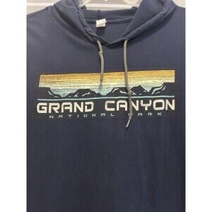 The Pacific Men's Grand Canyon Navy Blue Long Sleeve Pullover T-shirt Hoodie in size XL is a stylish and comfortable activewear piece perfect for the winter, fall, and spring seasons. Made from a blend of polyester and cotton jersey fabric, this hoodie features a drawstring closure, a hood, and a graphic print design with accents of a bow. The pullover style and regular fit make it easy to wear for outdoor activities like walking, while the navy blue color adds a touch of nature-themed style to your wardrobe. This machine washable hoodie is a versatile and practical addition to any man's clothing collection.