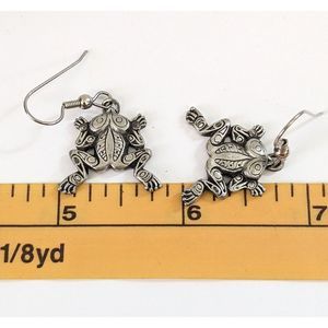 Pacific Northwest Style Silver Tone Frog Dangle Earrings Forest Boho Animals