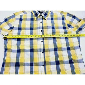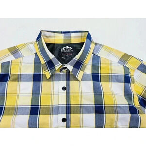 Pacific Outfitters Active Stretch Size Large Men's White Yellow Navy Check Shirt