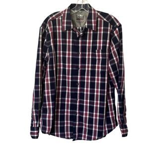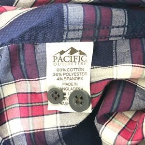Pacific Outfitters Mens M Active Stretch LS Blue Plaid Button Up Shirt Casual
