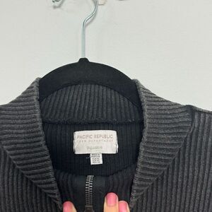 Pacific Republic Teen Girl's Full Zip Long Sleeve Ribbed Black Sweater Size XL
