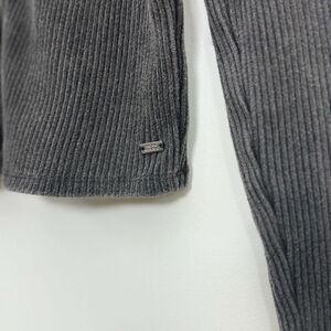 Style: This sweater is designed with a full zipper in the front, making it easy to put on and take off. It's characterized as a ribbed sweater, which typically features a textured pattern created by raised vertical lines, adding depth and style to the fabric.