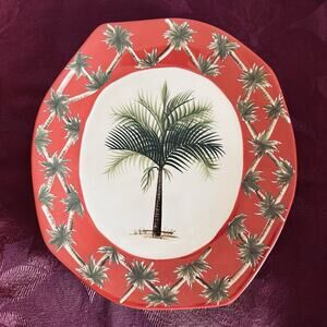 Pacific Rim Red Palm, Palm Tree China Plate Handpainted Octagonal VTG