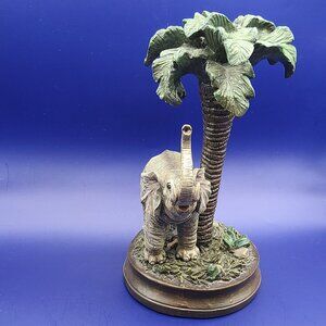 Pacific Rim Vintage Elephant Palm Tree Jungle Taper Candle Stick Holder 12" Tall