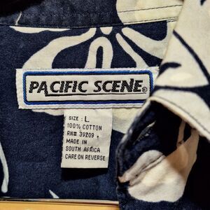 Pacific Scene Mens Hawaiian Print Short Sleeve Shirt Sz L Button Front Cotton