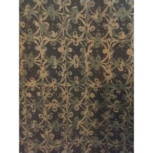 Colors are Dark Brown, Tan, and Green in a baroque/quatrefoil pattern