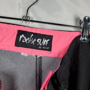 Pacific Surf Board Short Bright Pink Black Stripe Swim Trunk 1 Pocket Men Sz 36