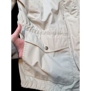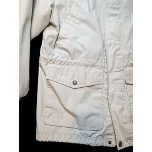 Nice vintage utility coat for the Gorpcore aesthetic style. It has six pockets on the front and one inside. Really practical coat from the 90s Y2K era.