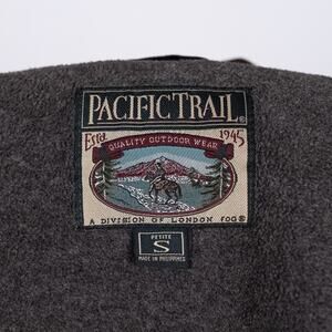 Pacific Trail London Fog Women's Fleece Lined Jacket Removable Hood SMALL Petite; Adjustable Waist and Cuffs; Roomy Pockets; Faux Leather Collar; Cotton Blend Shell: 65% Polyester, 35% Cotton. This item is in good, pre-owned condition with no rips, holes, or stains. Measurements: