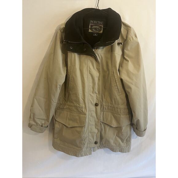 This Pacific Trail jacket is the perfect outdoor companion for your next hiking trip. The windbreaker style and hood will keep you protected from the elements and the beige color and outdoor theme add a touch of style. The jacket is made from polyester and is a size medium, with a regular fit for men. It also features the brand's signature quality and attention to detail, making it a reliable choice for any adventure. Whether you're hitting the trails or just looking for a stylish, functional jacket, this Pacific Trail windbreaker is a great choice.