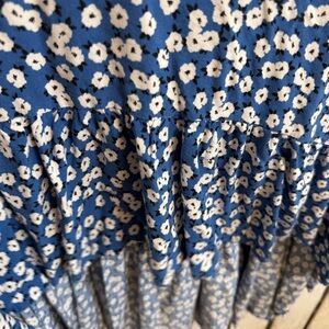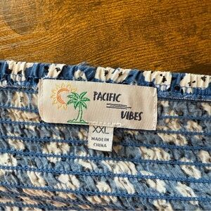 Pacific Vibes Boho Sundress Size XXL Sleeveless Blue White Floral Ruffle Hem