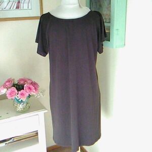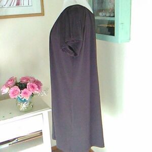 Chocolate brown. Pleated front. Super soft knit fabric. Short full sleeves. No size or content tag. 46 at chest, 80 at bottom hem. 38 long from shoulder to hem. I'm calling this 2X and beautiful.