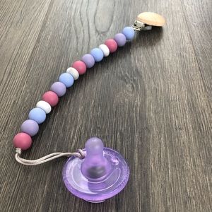 Attach your choice of pacifier or teething toy. This product saves the pacifier from falling to the ground and also doubles as a teether itself. Pacifier or teether not included.