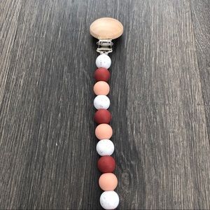 Attach your choice of pacifier or teething toy. This product saves the pacifier from falling to the ground and also doubles as a teether itself. Pacifier or teether not included.