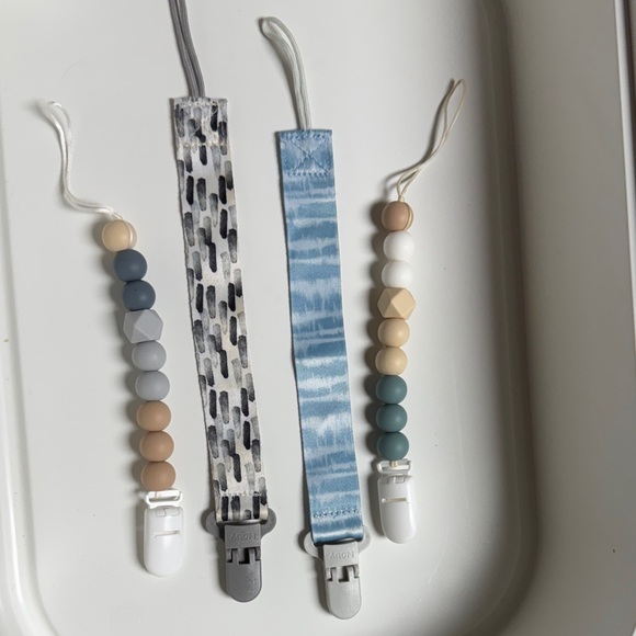 Two itzy ritzy clips and two navy clips. Barely used due to my children not taking pacifiers.