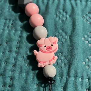 Pacifier holder great for teething, silicone beads, BPA free, piggy also silicone