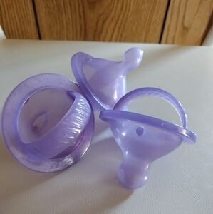 Set of three purple pacifiers. The Pacii brand. Baby won't take this kind.