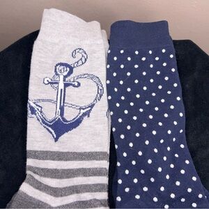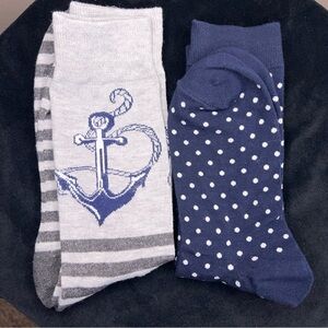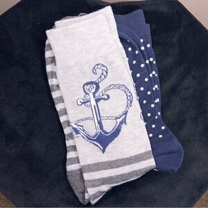 Pack Of Two Nautical Mens Socks Anchor Blue Grey Rockabilly